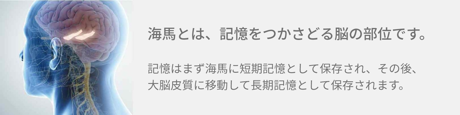 海馬とは、記憶をつかさどる脳の部位で、脳に記憶を保持するための役割を果たしています。記憶はまず海馬に短期記憶として保存され、その後、大脳皮質に移動して長期記憶として保存されます。